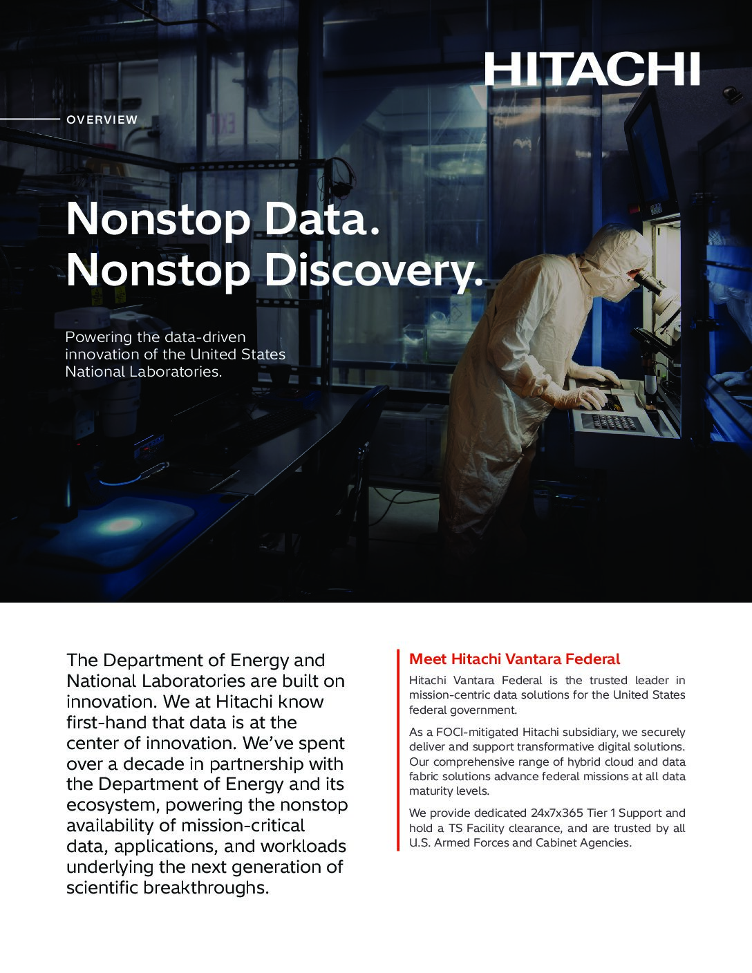 Read our overview to understand how Hitachi Vantara Federal works with the Department of Energy and National Laboratories to provide nonstop access to mission critical data for nonstop discoveries via download!